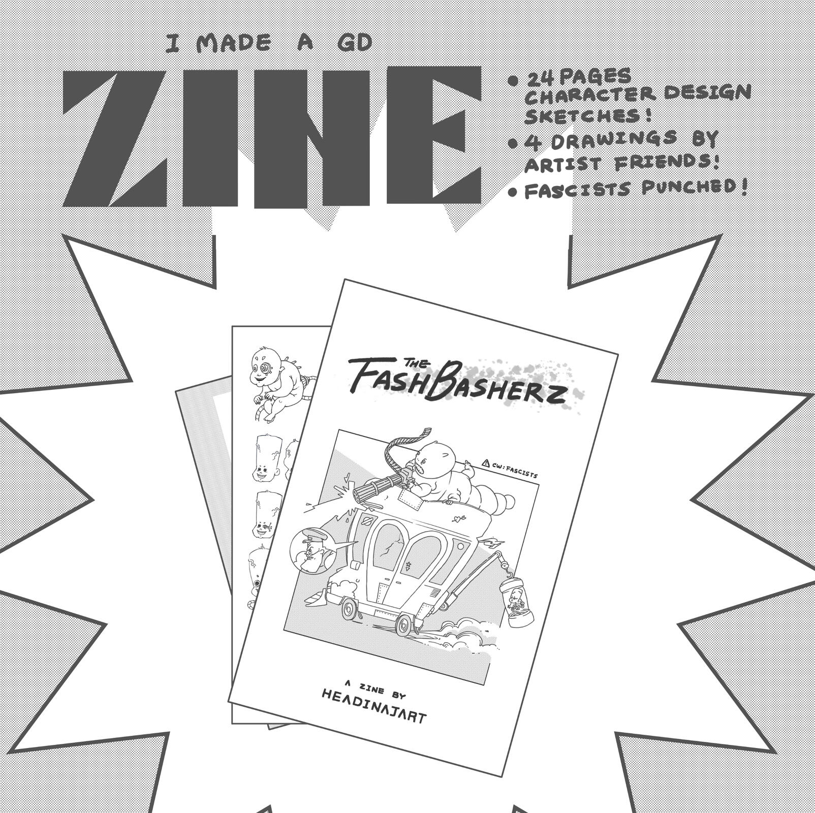 A character design zine (character dezine?) about three friends – Joses, Coco and Frogustus – fighting fascist zombies.
